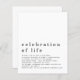 A value for money BUDGET alternative on a smaller size 4.5 x 5.6” semi-gloss 110lbs weight, which is of similar thickness to a postcard (however is not suitable to use as a postcard.). PLEASE NOTE there is ONE invite per sheet. Budget Celebration of Life Luncheon Invitation. A simple design with lots of white space for a contemporary modern touch. The header is large in stylish lowercase with the details beneath. Easily personalise the text to your own. You can also change the text and background colours if you wish via the customise further option in this fully customisable design.