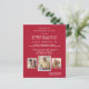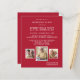 Elegant red and white design features white text on a red background. Three of your favourite photographs can be placed at the bottom. Bold white text makes it easy to read the details. All of the text can be easily edited to create a personal remembrance.