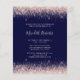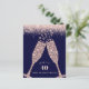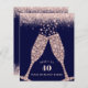 Budget Luxe Blush Glitter on Navy Champagne Toast 40th Birthday Party Invitation... On an elegant navy blue background with blush pink glitter borders, diamond champagne glasses toast a friend or family member's 40th Birthday with the words "Here's to 40 years on planet Earth." The back of the invitation -- also with feminine blush pink glitter -- displays all of the party details -- honoree's name, date, time and place of the party, plus RSVP information. A glamourous start for a 40th birthday. All text on front and back of this affordable invitation can be easily revised on the personalisation template.