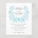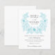 Your names and surnames are encircled by a rustic bouquet design of magnolia flowers in outlined turquoise colour on white background.