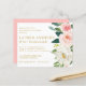 Modern botanical Bridesmaids Luncheon invitation in classic pink pastel watercolor features white and blush pink peonies and roses and lush green foliage on the left side framing your names and party details.
