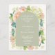 All-in-one wedding invitations feature your details on the front and back in chic white lettering. Beautiful watercolor flowers - white and green hydrangeas, pink and cream roses, daisies, small stems and leaves - on the front with your info on an arched overlay. Printed on affordable, budget 110 lb. paper. **WHITE ENVELOPES are an additional cost. The Live Design Service can help you with the layout of your design or colours if needed. MATCHING items in our store.