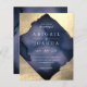Stylish wedding invitations featuring a diamond-shaped navy watercolor overlay with champagne gold foil corners. Your details are displayed with classy, elegant typography combining script and serif fonts. As part of the budget selection here on Zazzle, these invitations come in limited sizes and paper stocks. If you need a different size or paper stock, this design can be transferred to a standard 5x7 format using the design transfer tool for more options.