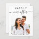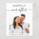 Budget-friendly wedding invitation featuring your photo and "Happily Ever After" in a mix of simple typography and a chic script with swashes.and your first names and wedding date joined together with a heart. On the reverse side, personalise your invitation in elegant typography. This budget semi-gloss paper is similar in weight to photo paper. A larger 5x7 traditional card stock version is also available (message us for the link).