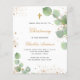 Budget christening eucalyptus blush invitation