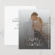 Simple modern minimalist wedding couple photo Christmas BUDGET affordable holiday wedding announcement card with faux silver merrily married typography overlay. +++++++++++++++++++++++ PLEASE READ THIS BEFORE PURCHASING! This is a budget affordable card printed on a paper sheet (each sheet has one card). ++++ For the best rapport price-quality, our advice is to choose the Semi-Gloss paper type (it is thick enough to be used for stationery) ++++ If you need envelopes, choose the ENVELOPE OPTION. +++ Double-check all the information and spelling of your text because you will receive exactly what you see - no one else will check anything before printing. ++++ This card is designed for size 4.5" x 5.6". In the case you choose another size of the card and text goes outside page, everything needs to be fixed before adding the product to cart. Please ask Live Design Service for help.