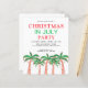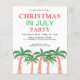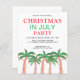 This budget Christmas in July party invitation is decorated with watercolor palm trees with lights and baubles.