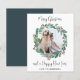 Send christmas greetings this holiday season with this elegant Merry Christmas custom photo in a wreath design card, and matching decor. This photo holiday card features a watercolor green and red wreath with holly and berries. Personalise with message & family name . This greenery photo template christmas card is perfect for family photo, pet photo christmas cards. Visit our collection for matching christmas cards, home decor, and gifts. COPYRIGHT © 2020 Judy Burrows, Black Dog Art - All Rights Reserved. Budget Christmas Modern Greenery Wreath Photo Card
