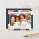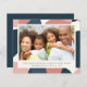 Budget-friendly modern and elegant holiday card featuring your photo framed against a modern pink, coral, cream and dark blue abstract pattern background. You can personalise the "Holiday Cheers & Happy New Year" greeting, your names and the year in simple dark blue typography.