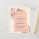 An arch frame and rose gold marble print as background. Decorated with rose gold and pink florals, roses and pampas grass. Personalise and add a name and details.