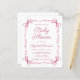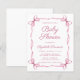 This cute, budget-friendly baby girl shower invitation blends a minimal aesthetic with a touch of vintage charm, featuring a soft pink frame adorned with delicate watercolor ribbons and coquette bows. The words "Baby Shower" and the name of the mother-to-be are showcased in an elegant pink script, while the shower details are presented in clean, simple pink lettering, creating a timeless and stylish design.