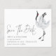 A value for money BUDGET alternative on a smaller size 4.5 x 5.6” semi-gloss 110lbs weight, which is of similar thickness to a postcard (however is not suitable to use as a postcard.). PLEASE NOTE there is ONE invite per sheet. Budget Crane Script QR Code Save The Date. Add your QR code to your wedding website on the back by replacing the QR code on the sample. A minimalist contemporary design with Save The Date in a modern set script an beautiful bird illustration to the right. The rest of the text you can easily personalise.