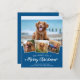 Merry Christmas wishes from the dog with cute paw prints in a fun modern photo collage design. Add your dog's photos or family photos with the dog, and personalise with family name, message and year. This pet holiday card is perfect for casual merry christmas cards. COPYRIGHT © 2021 Judy Burrows, Black Dog Art - All Rights Reserved. Budget Custom Pet Photo Dog Merry Christmas Card