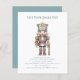 Budget Cute Nutcracker Christmas Party Invite. A budget price smaller 4.5 x 5.6" semi gloss card, similar in thickness to a postcard. There is ONE per sheet. A festive cute Nutcracker to invite your guests to your holiday gathering. Easily personalise with details.