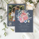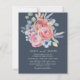 Elevate your wedding stationery with this modern invitation template, showcasing original hand-painted watercolor artwork of soft peachy pink roses, dusty blue and peach florals, and sage green eucalyptus. Set against a rich deep blue background, it blends romantic elegance with rustic charm. Ideal for boho, garden, or outdoor weddings, this fully customisable design allows you to personalise names, dates, and event details—creating a unique first impression and a timeless keepsake.