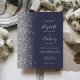 Budget Dark Blue Silver Glitter Wedding Invitation