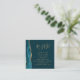 The left-hand edge of this elegant modern wedding website enclosure card features a teal watercolor agate border trimmed with faux gold glitter. The title appears in gold-coloured handwriting script, with customisable text below in copperplate font on a dark teal background. Upload your wedding website QR code to replace the sample image on the reverse side, framed by the words "scan me to RSVP."