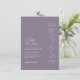 This Vintage Violet wedding invitation features botanical foliage line art paired with a romantic-style script font. The invite card reverses to a complementary light grayish-violet accent colour highlighting your QR Code RSVP wedding site for guests to view information about the wedding day. A digital download is also available for sustainable celebrations. View this botanical foliage collection by visiting The Rita Rose Zazzle shop at: https://www.zazzle.com/store/ritarose 🩷 Custom orders are always welcome, if you don’t see what you are looking for, feel free to contact me. 🤍 I am always happy to help.
