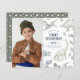 A modern boy's birthday party invitation with a dinosaur theme. This design features a set of hand-drawn dinosaurs in a sketch style. The dinosaurs include a t-rex, stegosaurus, triceratops, pterodactyl, and more! There are palm and fern leaves in between the dinosaurs. The colour scheme is a soft boho combination of blue and green tones. On the left side, there is your custom photo. Cards reverse to a pattern of dinosaur tracks against a green background. Feel free to contact me if you would like this design in a different colour scheme! As part of Zazzle's budget selection, this sheet doesn't come in standard card sizes. To get this design on a standard card, you can find it in the collection or use the Zazzle Make Machine to transfer it onto your preferred product. View the collection linked on this page for matching items or visit our store for more birthday party invitations!