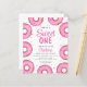 This cute Budget Doughnut Girl's First Birthday Party Invitation is decorated with pink watercolor doughnuts and stylish typography.