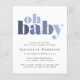 Budget-friendly minimal drive by baby boy shower invitation features "oh baby" in bold modern typography in shades of blue. Easily personalise the drive by shower details.