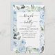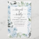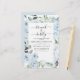 Budget Dusty Blue Floral Roses and Eucalyptus Botanical Greenery Watercolor Spring or Summer Wedding Brunch and Bubbly Champagne Bridal Shower Invitations - includes beautiful and elegant script typography with modern tropical botanical flowers and greenery for the special Bride to Be celebration.