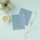 No envelopes, paper flyer version. Save money on formal invitations with this paper invitation. Get your guests ready for the amazing wedding with this Dusty Blue Calligraphy wedding invitation.