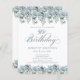 Dusty blue flowers create top and bottom borders on this elegant birthday invitation. Classic script calligraphy adds a beautiful touch. This item is party of the Dusty Blue floral collection.