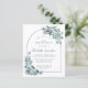 Dusty blue peonies and wildflowers decorate a pretty birthday invitation. Modern calligraphy and the arch add to the Boho Vibe.