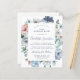 Dusty blue roses and wildflowers decorate a pretty birthday invitation. Modern calligraphy adds to the Boho Vibe.
