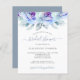 Modern and elegant pastel watercolor floral bridal shower invitation with pretty light blue flowers border with foliage on a white background. NOTE that the background and script colours and fonts are editable. You can change them after selecting CUSTOMIZE button. ++++++++++++ Ideal for a trendy chic spring summer bohemian garden backyard floral bridal shower party. ++++++++++ PLEASE READ THIS BEFORE PURCHASING! This is a budget affordable wedding card printed on a paper sheet (each sheet has one card). ++++ For the best rapport price-quality, our advice is to choose the Semi-Gloss paper type (it is thick enough to be used for stationery) ++++ If you need envelopes, choose the ENVELOPE OPTION. +++ Double-check all the information and spelling of your text because you will receive exactly what you see - no one else will check anything before printing. ++++ This card is designed for size 4.5" x 5.6". In the case you choose another size of the card and text goes outside page, everything needs to be fixed before adding the product to cart. Please ask Live Design Service for help.