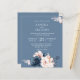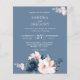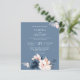This Modern Budget Dusty Blue Floral Wedding Flyer - features blush pink and dusty blue flowers with dusty blue twigs and blush pink splash on the dusty blue background. The reverse side of the bridal invitation is also dusty blue.