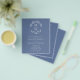 Budget All in One QR Code RSVP Dusty Blue Monogram Botanical Wreath Wedding Invitation Flyer... Our affordable trendy minimalist dusty blue and light grey-blue wedding invitation features a leafy botanical wreath displaying the bride's and groom's monogram initials above personalised invitation text in serif and sans serif typography for a simple and chic wedding invitation. The back of the invitation also displays your wedding website QR code as well as the website's URL itself allowing your invitees to easily RSVP online and view all of the details normally sent in a wedding packet. The example QR code graphic template and all example text can be easily revised with your own information on the personalisation template. PLEASE NOTE: The paper for our most affordable budget invitation is 80 lb. weight — the thickness of paper most often used for business and event flyers. Your office supply resource or online store will be able to supply the A6 envelopes for these invitations.