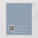 Budget Modern and Simple Dusty Blue QR Code Rehearsal Dinner Invite. The font colour and type can be changed via the edit menu. You can also change text and background colours on either side if you wish. A value for money smaller 4.5 x 5.6 inch alternative defaulted to the semi gloss option which is recommended for invitations and is a similar thickness to a postcard. The satin option is much thinner. Add your QR code to your wedding website on the back as a convenient option for your guests to RSVP. QR codes can be created free online. Simply search “QR code creator” and select one of the free creators. You can also remove the QR code should you wish.