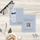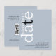 A value for money BUDGET alternative on a smaller size 4.5 x 5.6” semi-gloss 110lbs weight, which is of similar thickness to a postcard (however is not suitable to use as a postcard.). PLEASE NOTE there is ONE invite per sheet. Budget Dusty Blue QR Code Text Save The Date. Add your QR code to your wedding website on the back by replacing the QR code on the sample. You can create QR codes for free online. Simply search “QR code creator” and lots of options come up to create for free. A modern stylish typographical design to invite your family and friends to save your date, with Save Our Date in large typography rotated and to the left hand side at the top in white, with a black letter "t" on a background of pale dusty blue. Easily personalise the rest of the text.