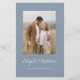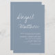 Budget Personalise this Boho Simple Elegant Dusty Blue and White Stylish Invitation with your message and details with a elegant photo on the back. This minimalist invitation includes stylish handwritten script typography with a modern colour for the special Wedding day celebration.