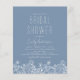 Budget Minimalist Wildflower Line Art Dusty Blue Elegant and Modern Script Bridal Shower for Autumn (Fall), Winter, Spring or Summer Invitations - includes beautiful and elegant script typography for the special Bride to Be pre - Wedding celebration.