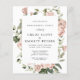 Elegant dusty pink roses are nestled in soft sage green foliage to create a modern floral frame around your engagement party details.