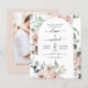 Budget Dusty Pink and Sage Green Floral Roses and Eucalyptus Botanical Greenery Watercolor Wedding Spring or Summer Photo or Picture Wedding Invitations - includes beautiful and elegant script typography with modern tropical botanical flowers and greenery for the special Wedding day celebration.