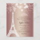 Budget Eiffel Tower Rose Gold Sparkle Glitter Quinceañera Quince Invitation