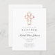 This budget elegant floral pink cross baptism invitation paper sheet is an affordable option that is printed on thinner and smaller paper than the standard invitation card paper. For complete information, please review the 'ABOUT PAPER SHEETS' section on this site. If you're looking for the standard card paper version or matching products, either check out the design collection or visit our Christian stationery store, Guiding Star.