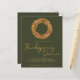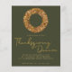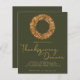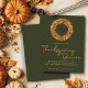 Budget Elegant Rustic Thanksgiving Autumn Leaves Wreath Dinner Party Invitation with stylish gold foil style typography featuring a warm watercolor wreath in harvest tones and autumnal shades of pumpkin, merlot, hazelnut brown, and honey gold maple leaves. The background is a deep shade of autumn green. Easily add your details and date for a stunning, stylish invitation. **Our BUDGET paper is smaller, lighter, and more delicate, but still beautiful! Don't forget the envelopes!** If you need assistance or matching items, please contact us at cedarandstring@gmail.com.