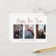 Elegant New Year's 3 photo collage greeting card. Back side has custom message and photo you can edit as well. Features red frame for photos. Designed for newly engaged couples or married couple, but can be used by families as well.