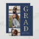 Modern Elegant Navy Blue Gold 3 Photo Graduation Invitation Announcement