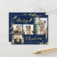 Budget, Elegant, Modern Navy Blue and Gold Botanical Leaves 4 Photo Collage Merry Christmas Holiday Card. This festive, mimimalist, whimsical four (4) photo holiday card template features a pretty photo collage, faux gold foil botanical leaves, winterberries and says Merry Christmas! The „Merry Christmas” greeting text is written in a beautiful hand lettered typography font type on dark navy colour background. On the reverse side one horizontal photo with gold frame and faux gold glitter foil leaves arrangement on navy. Pretty keepsake for your family and friends in this Christmas and Holiday season. Cheap Holiday cards.