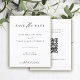 Classy minimalist formal calligraphy script modern BUDGET wedding save the date card with your QR CODE. +++++++++++ Suitable for any season and theme. ++++++++++ Easy to personalise with your text! +++++++++ PLEASE READ THIS BEFORE PURCHASING! This is a budget affordable wedding card printed on a paper sheet (each sheet has one card). ++++ For the best rapport price-quality, our advice is to choose the Semi-Gloss paper type (it is thick enough to be used for stationery) ++++ If you need envelopes, choose the ENVELOPE OPTION. +++ Double-check all the information and spelling of your text because you will receive exactly what you see - no one else will check anything before printing. ++++ This card is designed for size 4.5" x 5.6". In the case you choose another size of the card and text goes outside page, everything needs to be fixed before adding the product to cart. Please ask Live Design Service for help.