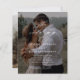 A simple and chic photo wedding invitation featuring elegant script calligraphy details and classic text overlay on a portrait vertical photo on the front. The back has a full bleed photo. Click the edit button to customise this design.