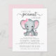A cute and budget-friendly baby girl shower by mail invitation featuring "A Sweet Little Peanut Is On Her Way" written in a mixture of soft grey modern typography and stylish script, and a pastel pink watercolor of a baby girl elephant. Personalise the mother's name and shower by mail details in simple grey typography.