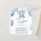 This adorable baby shower invitation features blue and grey baby boy elephant with balloons and confetti. Back features soft blue watercolor. Easily customised for your event by clicking personalise. Perfect if you need a stylish baby shower on a budget.