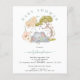 A budget price SMALLER 4.5” x 5.6” alternative. Available in a SEMI-GLOSS 110 lb CARD STOCK which is the default option (thicker for invitations), OR a SATIN FINISH 80 lb THINNER PAPER STOCK (ideal for enclosures). Envelopes are an optional extra and are slightly larger than the card size. This design has a cute sleeping baby elephant with balloons and foliage and curved text above and details below. You can easily personalise all the text to your own requirements. A coordinating sage green coloured background is on the back. You can also change the fonts and text colours if you wish via the Click to Customise Further option as well as the background colours of either side.